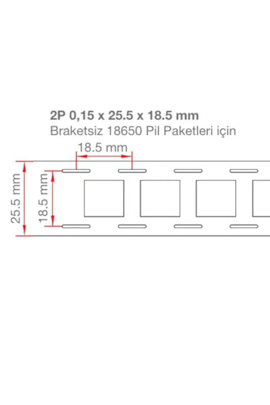2P Nikel Kaplama 18650 Pil Punto Şerit (25.5x18.5x0.15mm) Braketsiz Paketlere Uygun