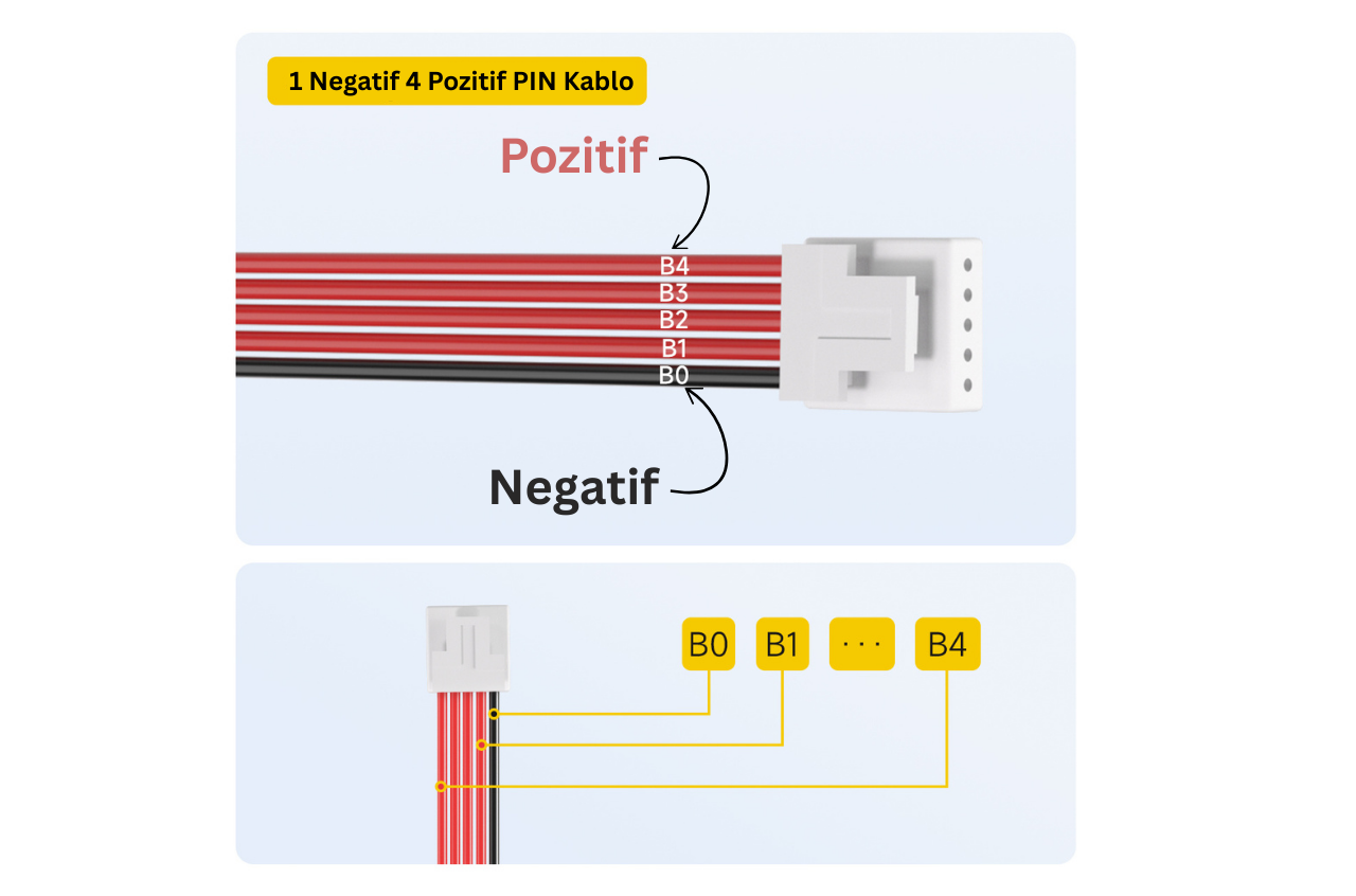 Not: 4 hücreli (4-string) BMS konfigürasyonu için varsayılan örnekleme kablosu 5PIN’dir.
